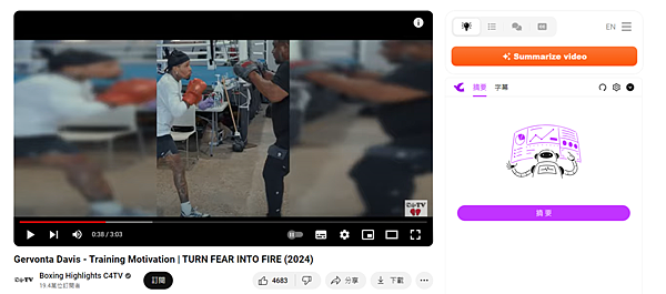 到 Youtube 他也會安插在影片旁,可以直接生成摘要跟字幕!(只有紫色部分,上方橘色為其他插件~)